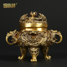 铜欣祥纯铜香炉仿古九龙熏香炉香道佛具用品香薰炉居室佛堂檀香炉