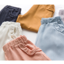 2017新款韩版纯棉童装女童打底裤子小花木耳边五分裤薄款儿童短裤