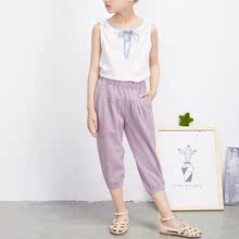 2017夏季儿童裤子新款纯色棉麻防蚊裤儿童灯笼裤儿童哈伦童裤