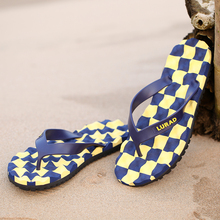 男士休闲沙滩人字拖 耐磨防滑格子按摩底夹拖沙滩凉拖鞋潮流