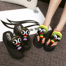 2016新款韩版卡通拖鞋小草人厚底人字拖沙滩松糕拖鞋高跟夏女凉鞋