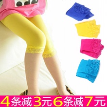女童七分打底裤五2014春夏款童装蕾丝勾花边天鹅绒儿童连裤袜