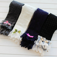 春秋新款 儿童点点九分纯棉打底裤袜 蕾丝花边蝴蝶结女童针织袜子