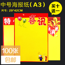 海报纸A3促销广告纸 定制POP海报 空白手写海报 超市广告纸手写