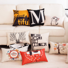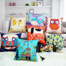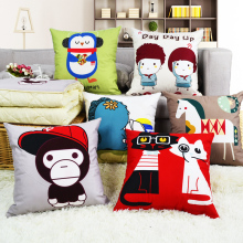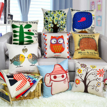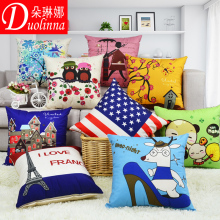 亚麻款卡通靠垫抱枕沙发抱枕办公室方枕可含芯抱枕套靠枕靠背腰枕