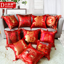 大红绸缎结婚婚庆喜庆十字绣大靠枕沙发靠垫 全家福喜字福字抱枕