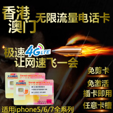 香港电话卡 2/4/7天不限流量4G港澳上网手机卡580分钟澳门上网卡