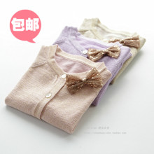 2016秋新款外贸童装女童金丝针织开衫儿童宝宝蝴蝶结纯棉薄外套