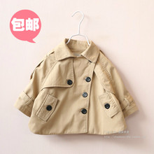 包邮2017春季新款宝宝风衣 男女童双排扣斗篷风衣 儿童短款外套