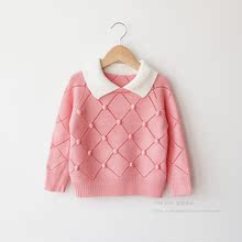 童装2016春秋新款女童毛衣套头儿童鱼鳞纹针织衫宝宝翻领羊绒衫