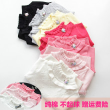 春季款女童娃娃领打底衫 儿童纯棉长袖圆领白色T恤花边领翻领上衣