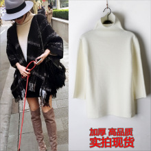 2017新款毛衣套头针织衫打底衫秋冬款修身高领羊毛衫加厚女七分袖