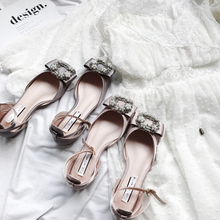 春季夏季新款珍珠水钻镂空小单鞋平底鞋粉色圆头搭扣