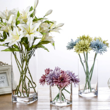 现代简约创意花瓶透明玻璃方缸客厅办公室餐桌装饰玻璃花瓶摆设