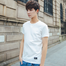2017夏季短袖t恤男士纯棉修身v领男装2017新款潮流上衣服半袖体恤