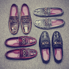 夏季真皮鳄鱼纹豆豆鞋一脚蹬帆船鞋驾车鞋男懒人鞋英伦潮流男皮鞋
