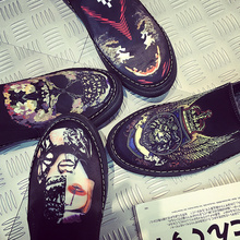 夏季韩版休闲鞋社会小伙鞋子印花帆布鞋乐福鞋男懒人鞋一脚蹬潮流