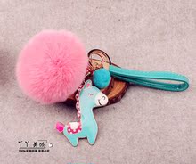可爱小马獭兔毛球汽车钥匙扣 创意礼品钥匙挂件 毛绒钥匙链