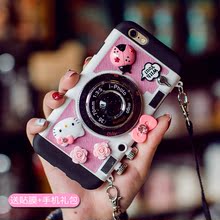 韩国可爱相机苹果6plus手机壳萌猫iphone7/7plus保护套女挂绳硅胶