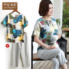千百怡恋中年妈妈装夏装短袖休闲两件套衣服中老年女装棉麻套装