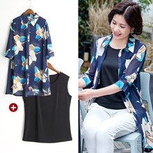 千百怡恋胖妈妈装夏装雪纺衬衫中年女装中袖两件套装40-50岁上衣