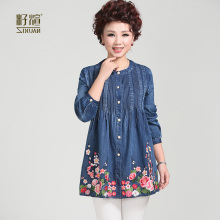 籽煊中老年女装春装大码新品牛仔绣花长袖衬衣女妈妈装上衣外套
