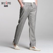 ruipe男士亚麻长裤中国风男裤夏季薄款棉麻修身休闲直筒宽松裤子