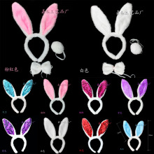 发光亮片兔耳复活节头饰闪光发箍地摊夜市演唱会热卖COS装扮道具