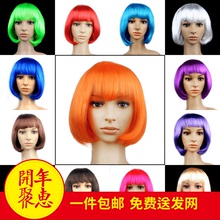 小苹果广场舞彩色BOBO波波头学生发化妆舞会假发酒吧表演万圣节