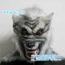 全套头狼面具 恐怖面具 鬼怪面具 灰色高档乳胶狼头面具235g