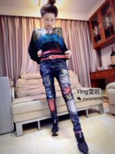 祥仔欧货2017春季新款韩版破洞喷漆牛仔裤时尚百搭潮流休闲裤正品