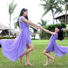 童装亲子装夏装连衣裙2016新款 女童沙滩裙儿童长裙雪纺大童裙子