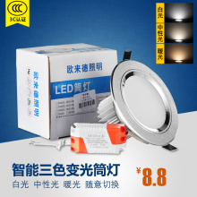 欧来德智能变光三色led筒灯7.5客厅天花吊顶嵌入式桶灯2.5寸3w5w