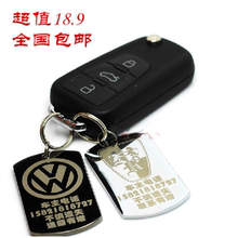 包邮 汽车钥匙扣防丢牌 免费个性刻字钛钢卡牌 激光打印车标情侣