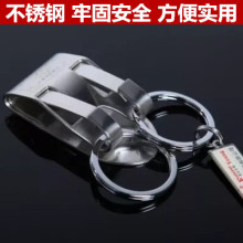 韩国不锈钢男士穿皮带式金属双环钥匙扣/腰挂汽车钥匙链/创意礼品