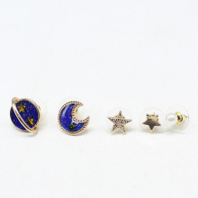 日韩潮流 宇宙行星星球月亮星星珍珠耳钉一组A56