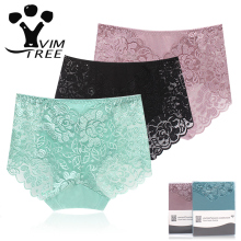 VIM TREE/活力树3条装性感透视蕾丝大码中腰女士三角内裤短裤