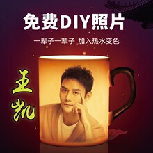 个性diy定制订做变色水杯子加热水可印照片情侣一对马克生日礼物