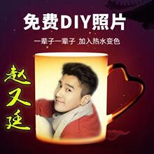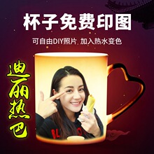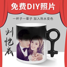 创意diy情侣一对马克变色热水杯子陶瓷定制定做可印照片生日礼物