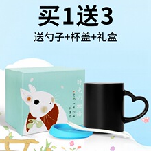 情侣一对个性定制陶瓷喝水杯子带盖勺变色礼物马克创意可爱清新