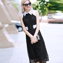 清仓138包邮欧美大牌高端女撞色蕾丝优雅复古气质修身中长连衣裙