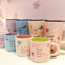 仟度彩绘马克杯 大容量大口径大底陶瓷杯水杯 创意情侣牛奶咖啡杯