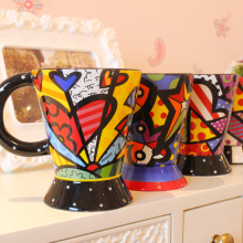 仟度彩绘陶瓷杯 大容量时尚马克杯情侣水杯冰淇淋杯 创意冷饮杯子