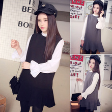 2016秋冬新款韩版女装拼接衬衫长袖假两件荷叶边连衣裙女潮 学生