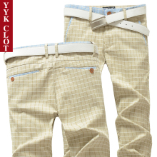 九分裤男士休闲裤男裤英伦修身小脚格子夏天卡其哈伦裤短裤男夏季