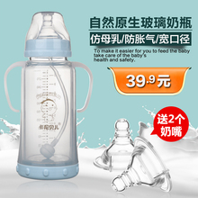 宽口径初生婴儿玻璃奶瓶宽口带吸管手柄宝宝防胀气防爆防摔新生儿
