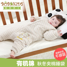婴儿睡袋秋冬有机彩棉纯棉加厚宝宝睡袋分腿式防踢被小孩儿童睡袋