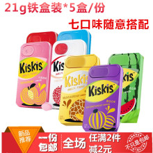 美国品牌KISKIS酷滋坚实型压片咀嚼薄荷糖21g*5盒铁盒限时送一袋