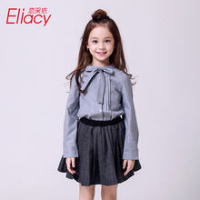 恋采依童装女童2017春装中大儿童立领蝴蝶结琴褶优雅上衣衬衫