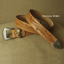 镀银针扣三件套真皮腰带 男士 纯手工雕花皮带 休闲百搭 个性复古